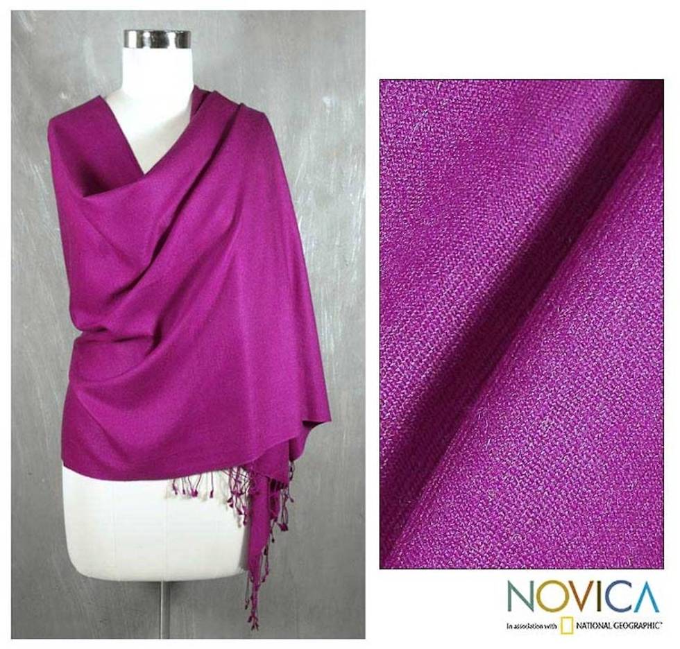 Woven Purple Wool and Silk Shawl with Fringe from India 'Mumbai Orchid' Item ID: 2669925361