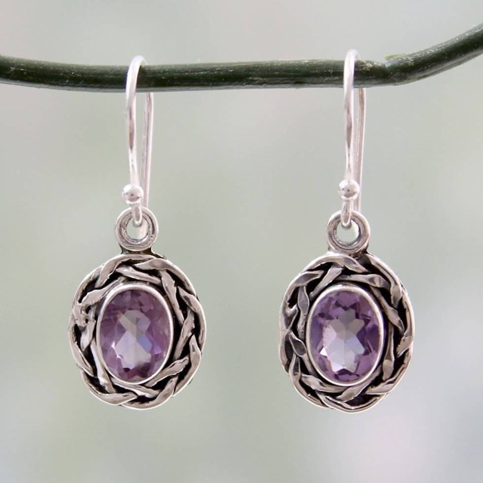 Woven Sterling Silver and Amethyst Dangle Earrings 'Indian Basket' Item ID: 2671817584
