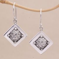 Woven Sterling Silver Diamond Shaped Dangle Earrings 'Weaving Ketupats' Item ID: 2669922115