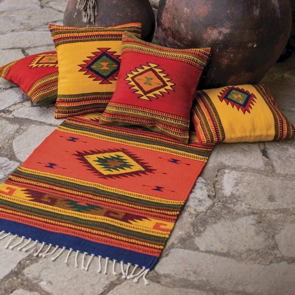 Woven Wool Cushion Cover from Mexico 'Morning Star' Item ID: 2669898069