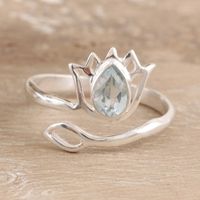 Wrap Ring Made with Blue Topaz and Sterling Silver in India 'Iridescent Lotus' Item ID: 2671789022