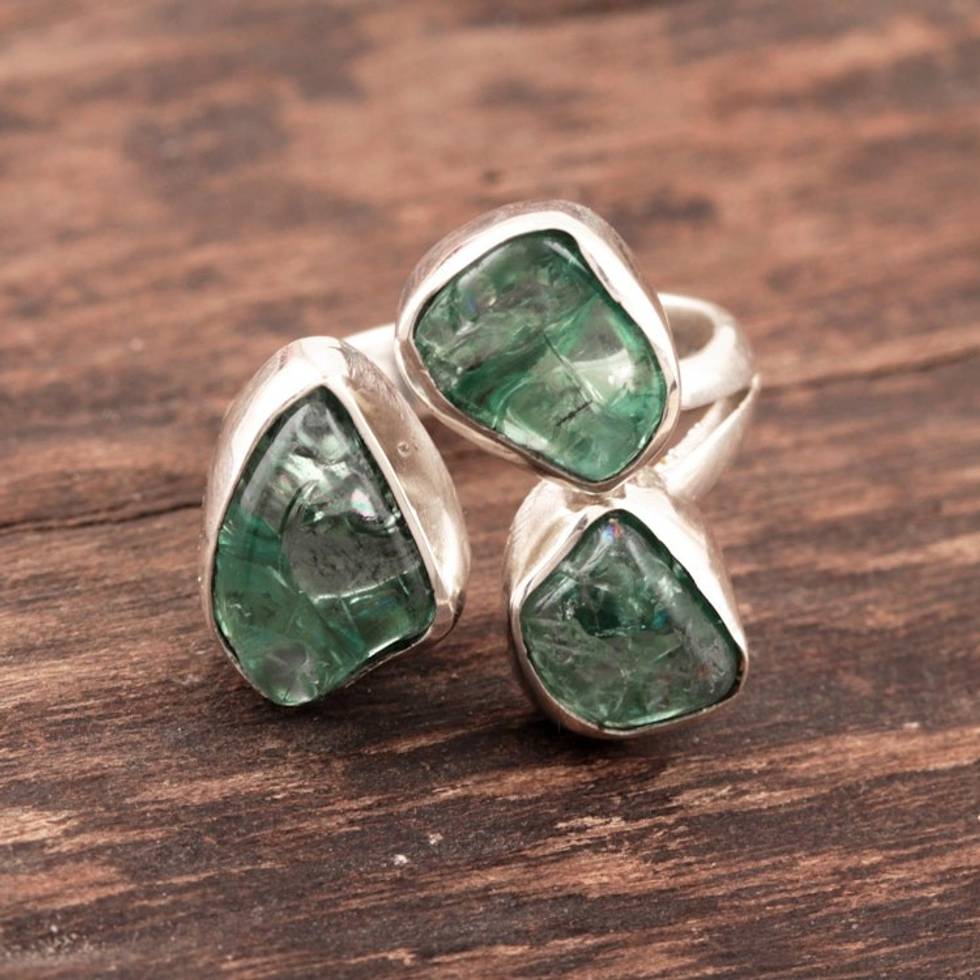Wrap-Style Apatite Nugget Cocktail Ring from India 'Harmonious Wood' Item ID: 2669943173
