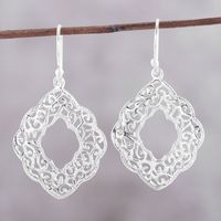 Wreath-Shaped Sterling Silver Dangle Earrings from India 'Mesh Wreath' Item ID: 2671792947