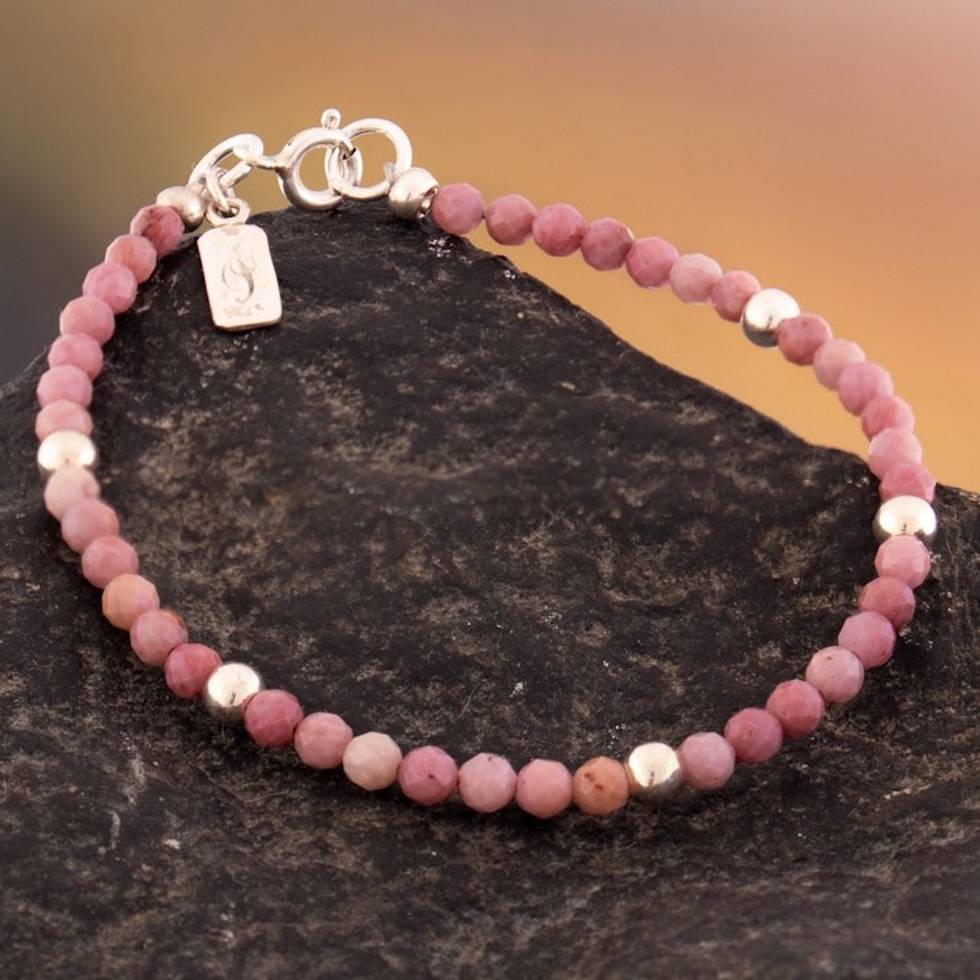 Wristband Bracelet with Rhodonite Stones and Silver Beads 'Mystic Rose' Item ID: 2671698074
