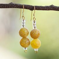 Yellow Agate and Recycled Glass Beaded Dangle Earrings 'Sunny Universe' Item ID: 2671804138
