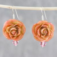 Yellow and Peach Natural Rose and Glass Bead Earrings 'Captured Sunset Beauty' Item ID: 2671798738