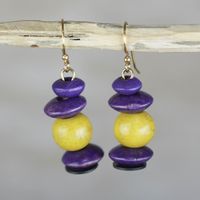 Yellow and Purple Sese Wood Pebbles Beaded Dangle Earrings 'Stacks of Pebbles' Item ID: 2671801080