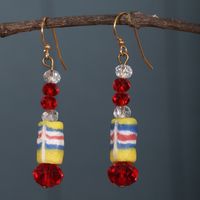 Yellow and Red Recycled Glass Beaded Dangle Earrings 'Gyidi Red' Item ID: 2671804014