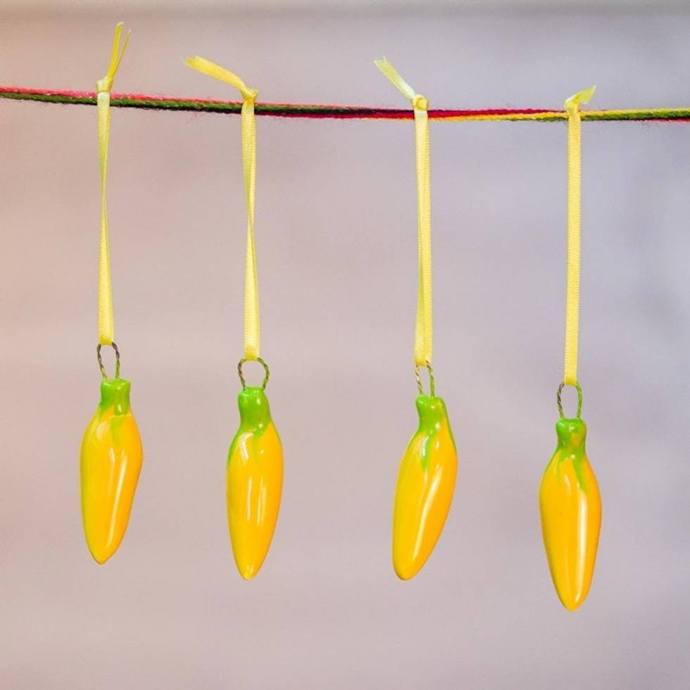 Yellow Ceramic Serrano Pepper Ornaments Set of 4 'Serrano Peppers in Yellow' Item ID: 2671808725