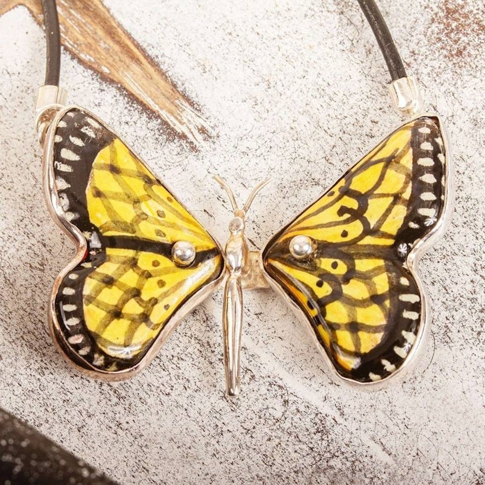 Yellow Ceramic Sterling Silver Butterfly Pendant Necklace 'Gold Metamorphosis' Item ID: 2671808615