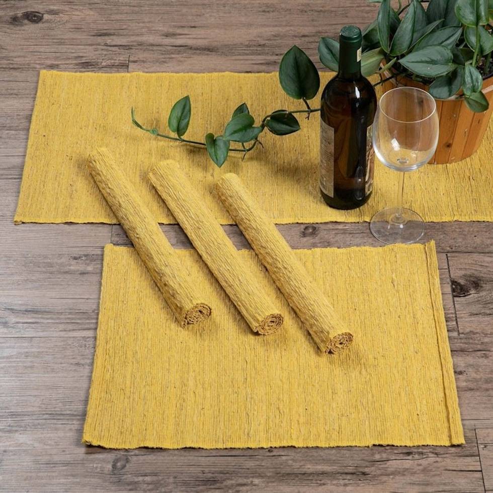 Yellow Cotton Blend Table Runner and Placemats 5 Pieces 'Yellow Aroma' Item ID: 2671765733
