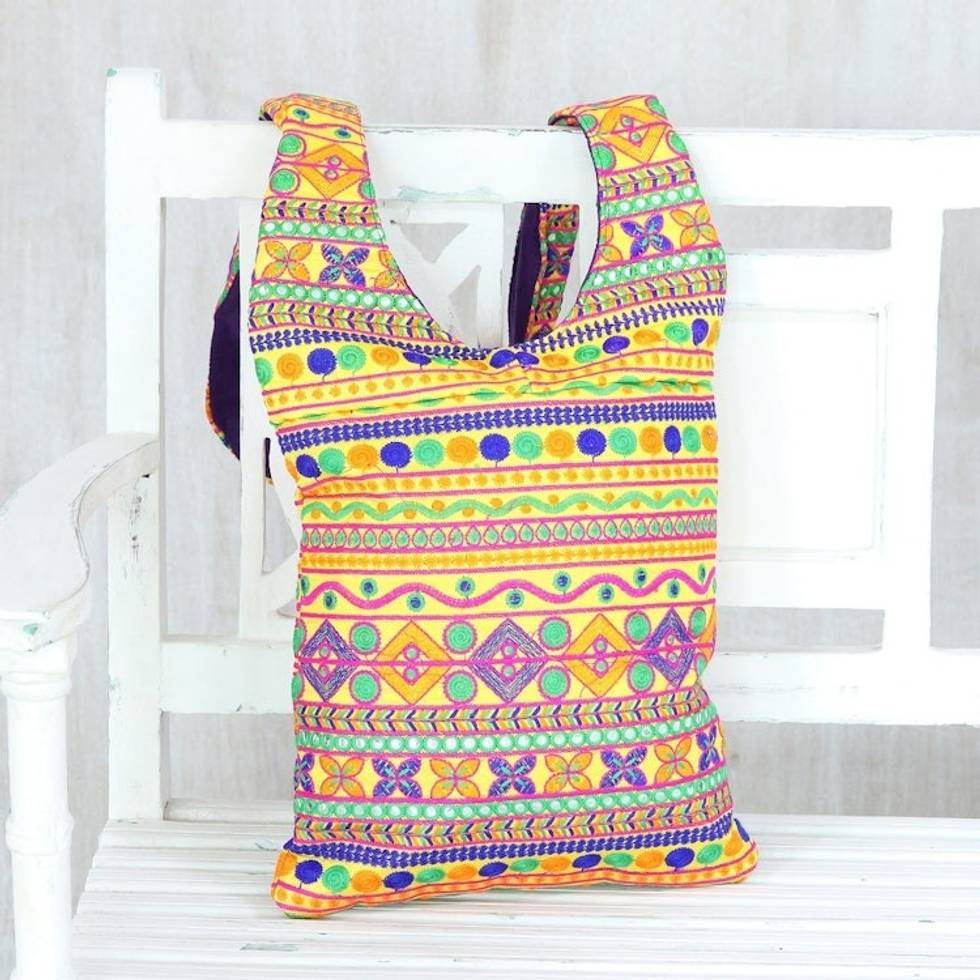 "My designs speak of the beautiful colors and culture of Gujarat. I love using rich colors in my products. Sparkling lace trims are also abundantly used. In the future, I would love to expand my workshop and my aim is to provide work for at least 100 craftspeople in my village. And I am sure that through Novica, I can very well achieve my goal or at least come close to my dream."