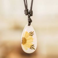 Yellow Natural Daisy Flower and Resin Pendant Necklace 'Sunrise Daisy' Item ID: 2676659419
