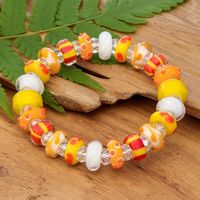 Yellow Orange Blown Glass Crystal Beaded Stretch Bracelet 'Vibrant Spell' Item ID: 2671796595
