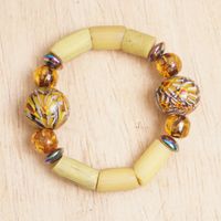 Yellow-Toned Recycled Glass and Plastic Beaded Bracelet 'Prosperous Memory' Item ID: 2671804085