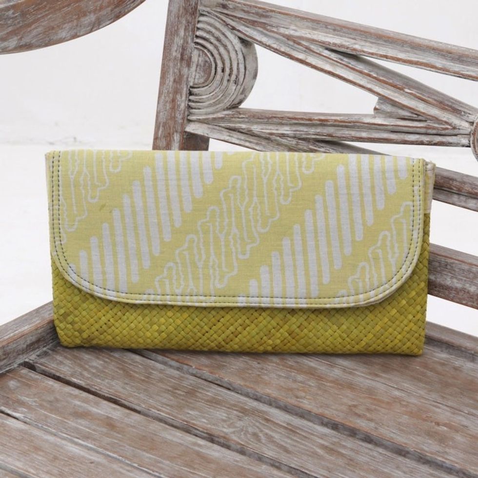 Yellow White Batik Parang Lontar Leaf and Cotton Clutch 'Royal Parang' Item ID: 2671736474
