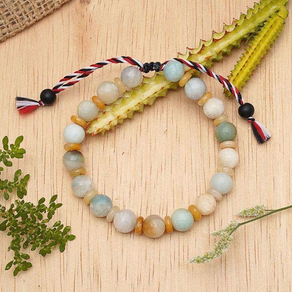 Yoga Tridatu Amazonite and Onyx Beaded Men's Bracelet 'Tridatu Harmony' Item ID: 2671765811