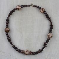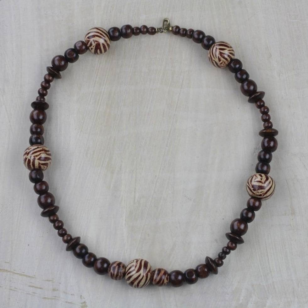 Zebra Motif Sese Wood Beaded Necklace from Ghana 'Zebra Queen' Item ID: 2671803657