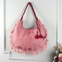 Zippered Blush Pink and Red 100 Linen Hobo Bag with Fringes 'Blush Bold' Item ID: 2676664223