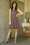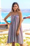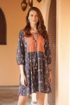 Screen Printed Floral Cotton Babydoll Short Dress from India 'Floral Surprise'