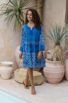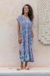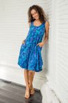 Blue Tie-Dyed Batik Leafy Grove Rayon Sleeveless Tunic 'Leafy Grove'