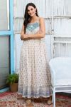 Embroidered Viscose Floral Motif Maxi Dress 'Corfu Seas'