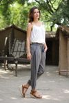 Dusty Grey Viscose Pants with Navy Accents from India 'Navy Sophistication'
