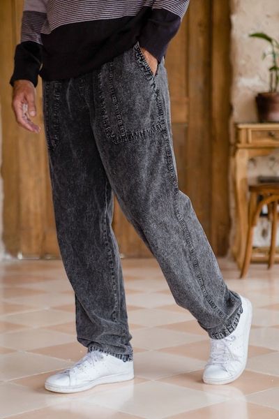 Men's 100 Cotton Pants Woven and Dyed in Black from Peru 'Washed Black'