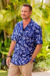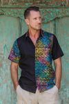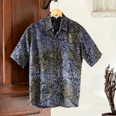 Handmade Men's Cotton Batik Shirt with Balinese Motifs 'Javanese Batik'