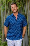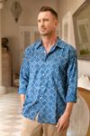 Men's Block-Printed Indigo Cotton Shirt from India 'Indigo Joy'