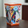 Cylindrical Talavera-Style Ceramic Vase from Mexico 'Colorful Bouquet'