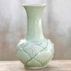 Fair Trade Thai Celadon Vase with Bodhi Tree Motif 'Thai Bodhi'